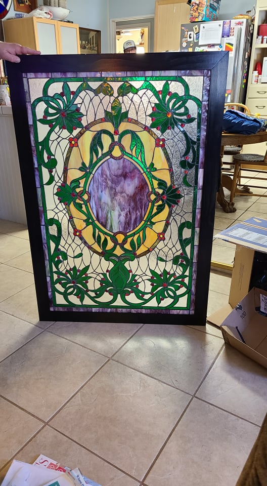 Kevin will be taking a closer look at this Perry Panel to find the breaks that need fixing and to get a feel for the glass and other materials that will be needed to bring back the full beauty of this gorgeous piece of work. If and as the repair commences, we’ll keep you posted on how it goes.