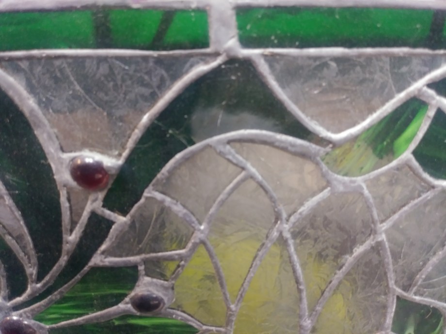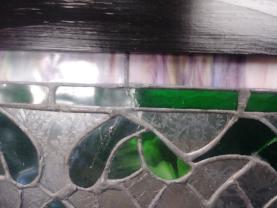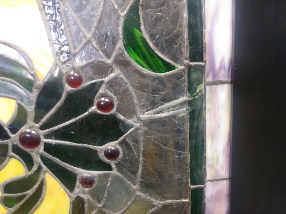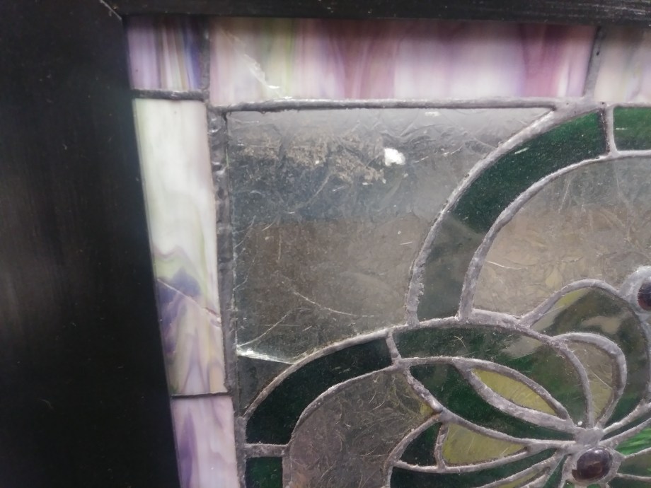 We’re lucky that the bones of the panel are good. The framing seems sound, and there’s a lot of glass that’s in good shape. There are also many places where we might incorporate some stronger structural elements, enhancing the panel’s stability while maintaining its appearance. But there’s a lot that…needs some work, and some of it’s in places that will require a lot of disassembly to get to. But we always do love a challenge, and it’s always a pleasure to restore beautiful pieces to glory!