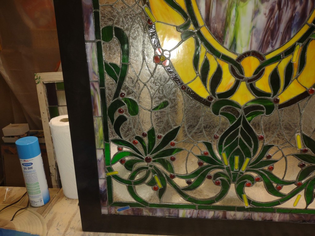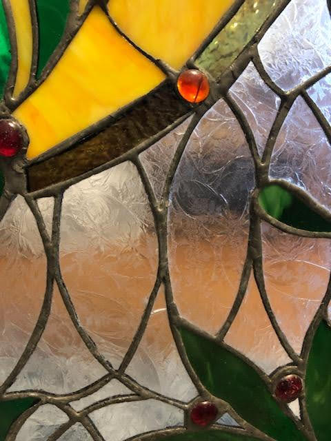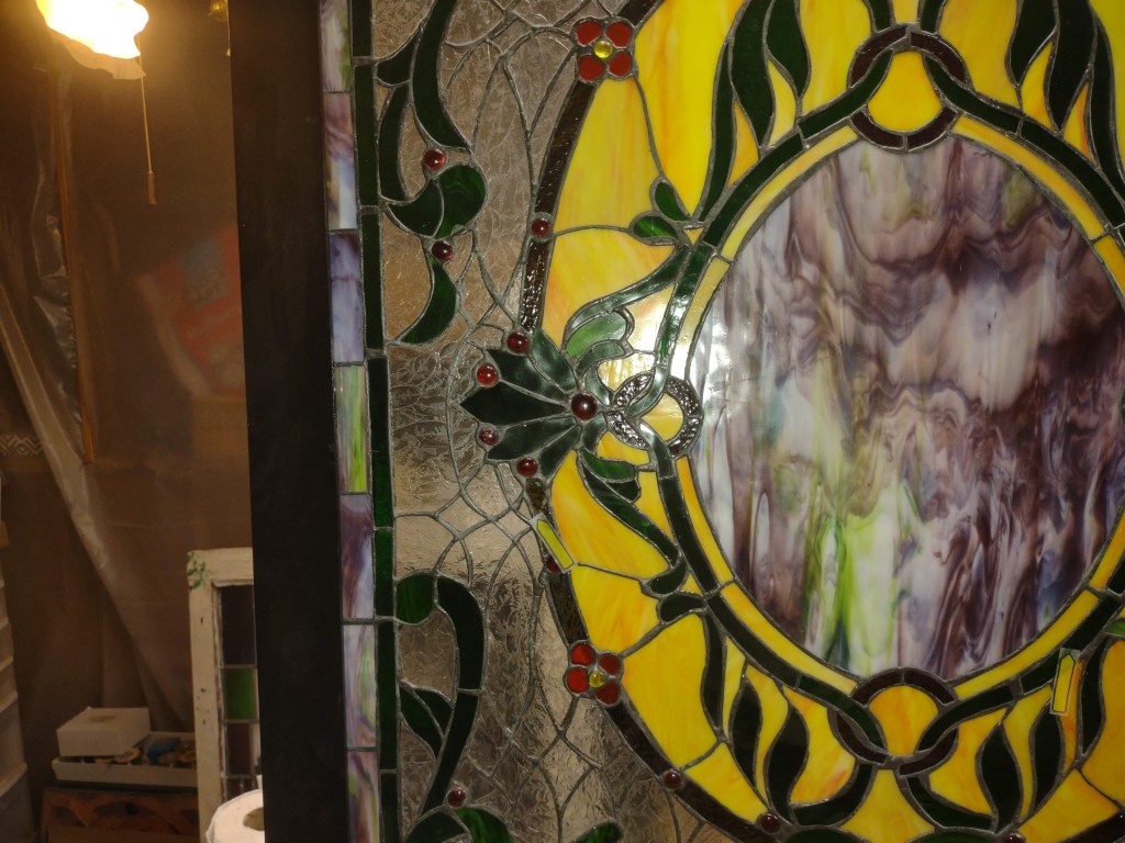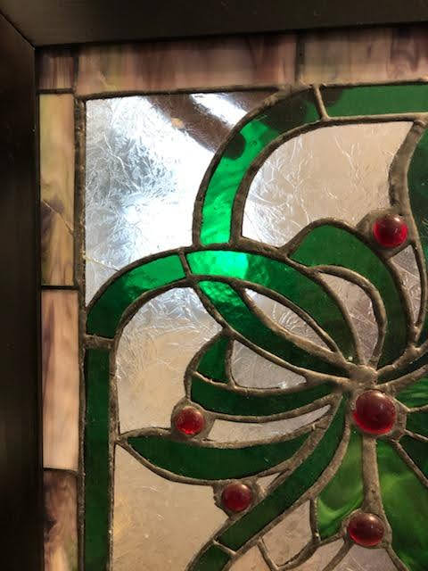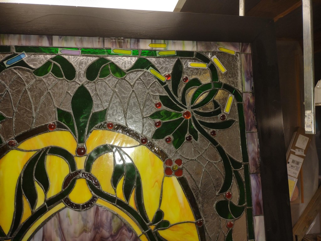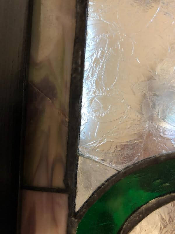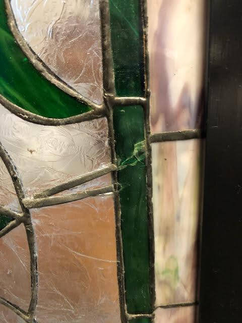 It’s not a surprise, admittedly. We were told that the panel came from a movie set, and shooting takes a toll on everything that connects to it. Too, it’s been a while, and age, unfortunately, affects us all. Further, the whole piece is in the Tiffany style, and while that allows for beautifully detailed work, it doesn’t always come with the best stability and endurance. Pieces move and shift, and the stresses of doing so sometimes break the glass. Fortunately, though, we know just what to do and how to do it–and we’ll let you know some more about that next time!