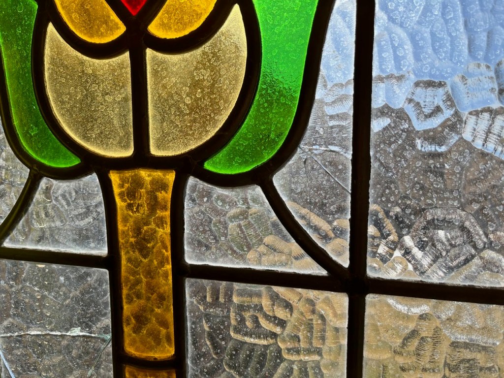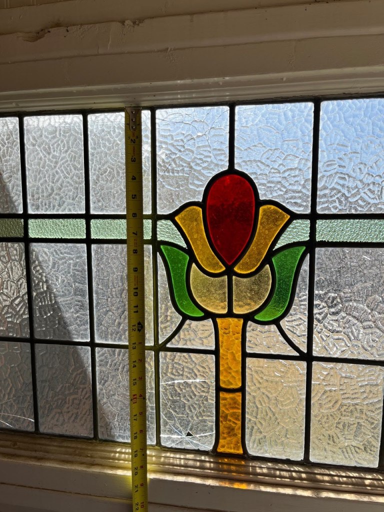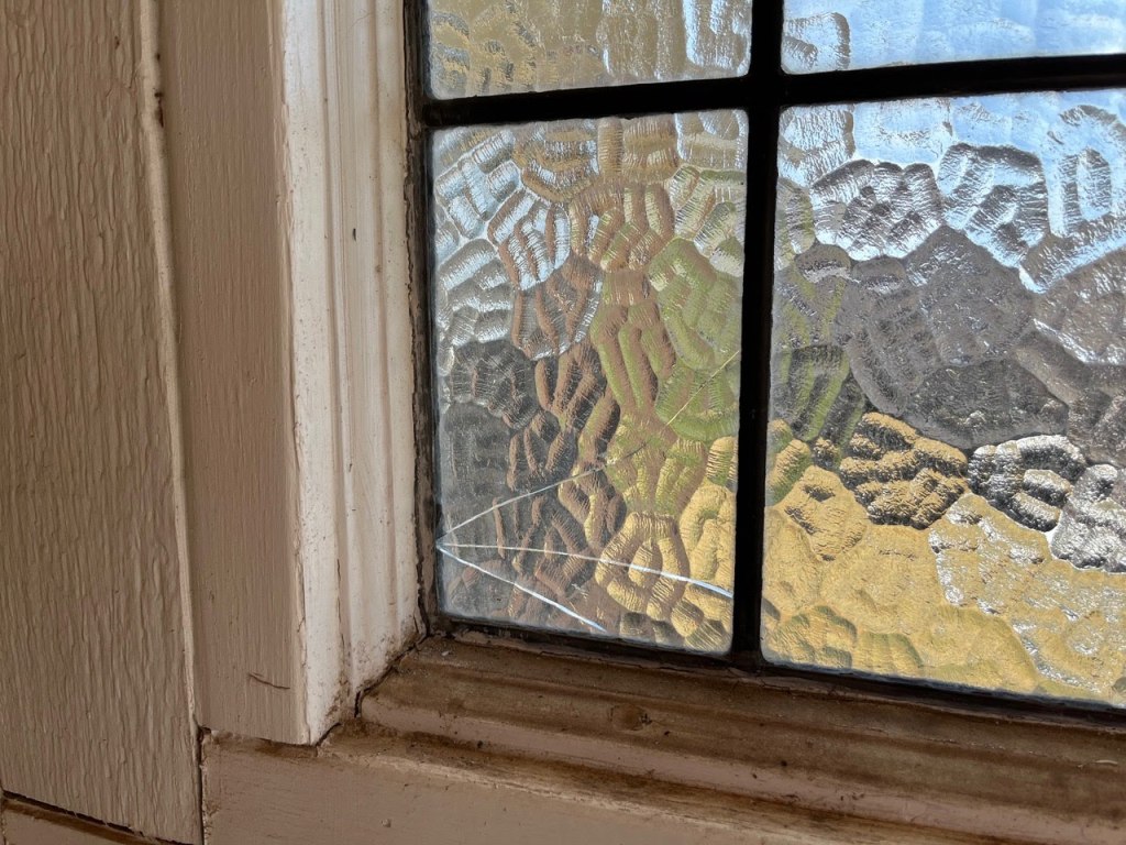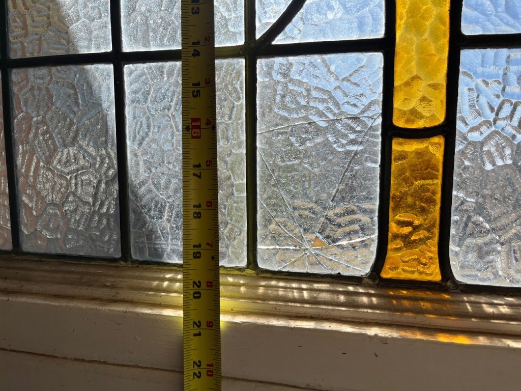 It’s clear even from these photos that there’s work to do; several panes need replacing, including one that seems to’ve had a hole punched clean through it by a particularly ornery hailstone, and there might be more to find once we get a good look at it in our shop. The window needs a good cleaning, too–but between getting that and the repair, when we get it back to the client, it’ll be a glorious little bit returned to another Hill Country town!