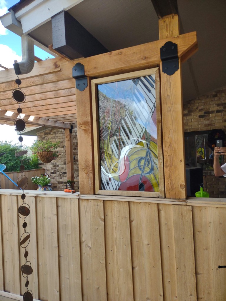 Every indication we have is that the client is happy about the work we did–and we’re pretty pleased with it, ourselves! We’ve got every expectation that the piece will stand up to what the Hill Country might throw at it–and if it looks like something’s coming in that might put that to the test, or if the panel needs a good cleaning, it’ll unhook from its housing with ease!